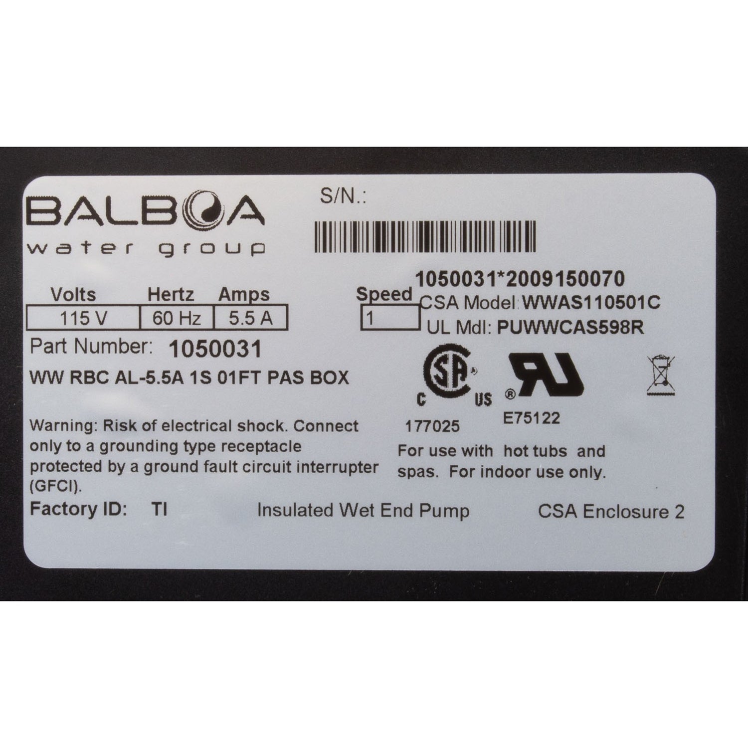 Pump, Bath, BWG Vico WOW, 0.5hp, 5.5A, 115V, w/Air Switch&Cord, OEM : 1050031 is backordered and will ship as soon as it is back in stock.