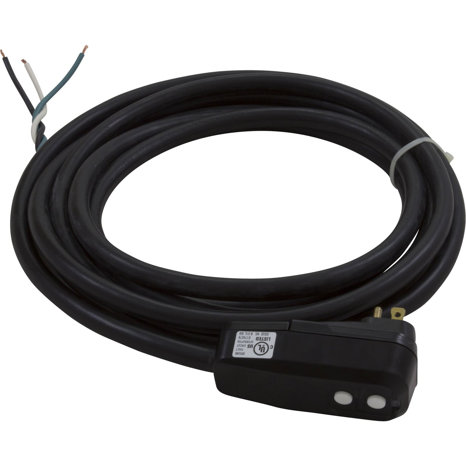 In-Line GFCI, 15A, 115v, SPST, 15 foot Cord, (B/W/with G) : 30-0061B-K