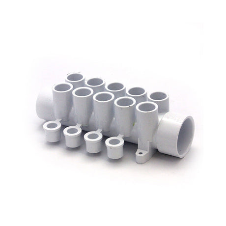 Manifold, PVC, Waterway, 1-1/2"S x 1-1/2"Spg x 10 1/2"S Ports w/ 4 Plugs : 672-4630