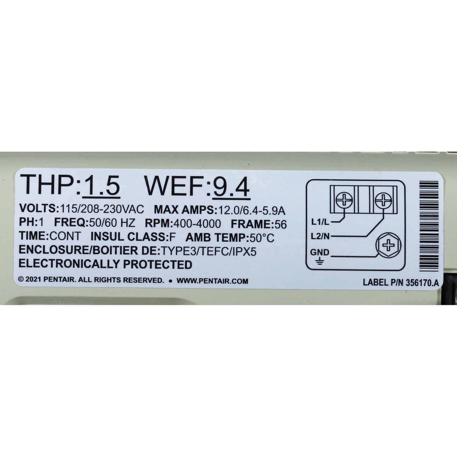 Pump, Pentair IF3 VSF, 1.5hp, 115v/208-230v, w/Relay Board : 011066