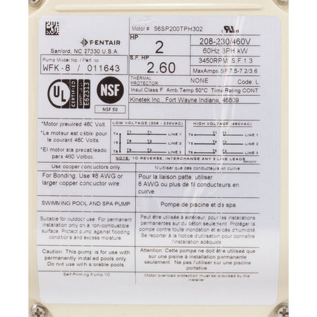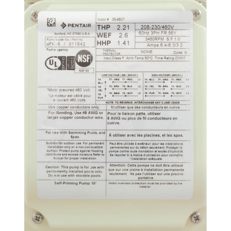 Pump, Pentair WhisperFlo, 2.0hp, 208-230/460v, 3-Phase, SD : 011643