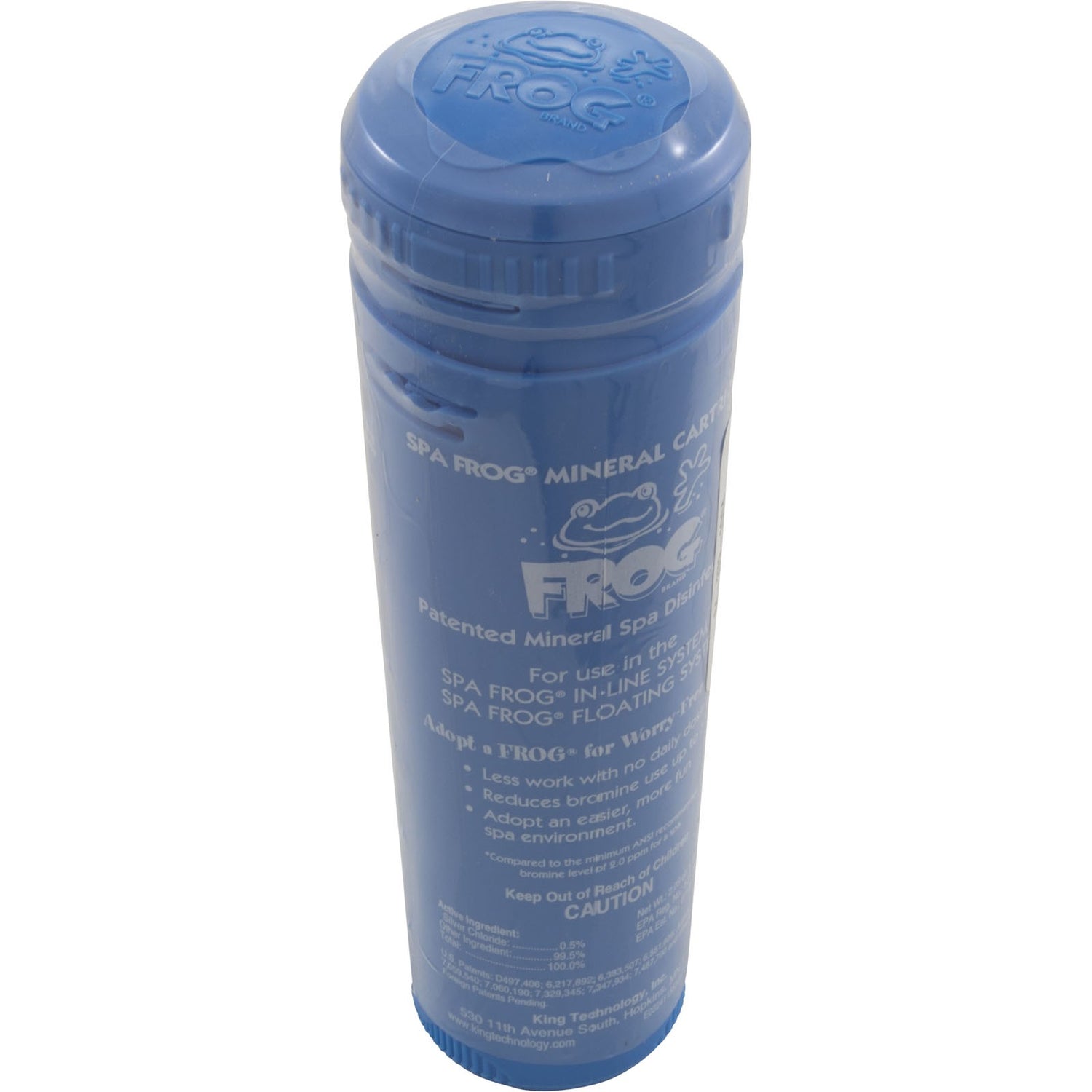 Spa Frog Mineral Cartridge, King Tech, In-Line/Floating Sys The SPA FROG™ Bromine Cartridges are designed for the SPA FROG™ Floating System Reduces chlorine or bromine use by 50% Works in any spa Leaves water feeling softer and water clearer Replace every four months Model: Spa Frog Manufacturer: King Technology Application Type: Mineral Sanitizer Replaces _9220-330,01143812EACH,15370,9220-330,KTC-45-563,