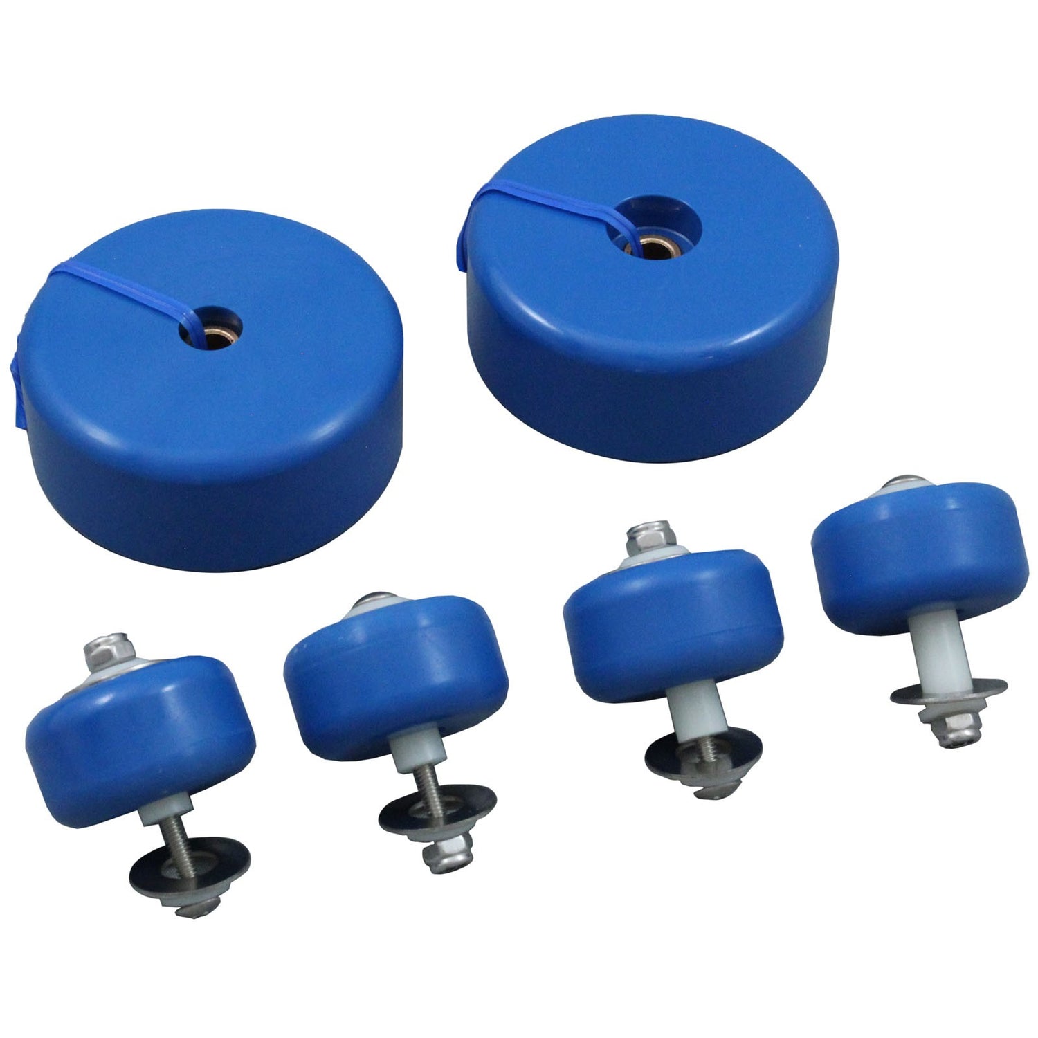 Wheel set for both the 21" and 30" vacuum heads. Small wheels include hardware and bushings, large wheels include bushings only.